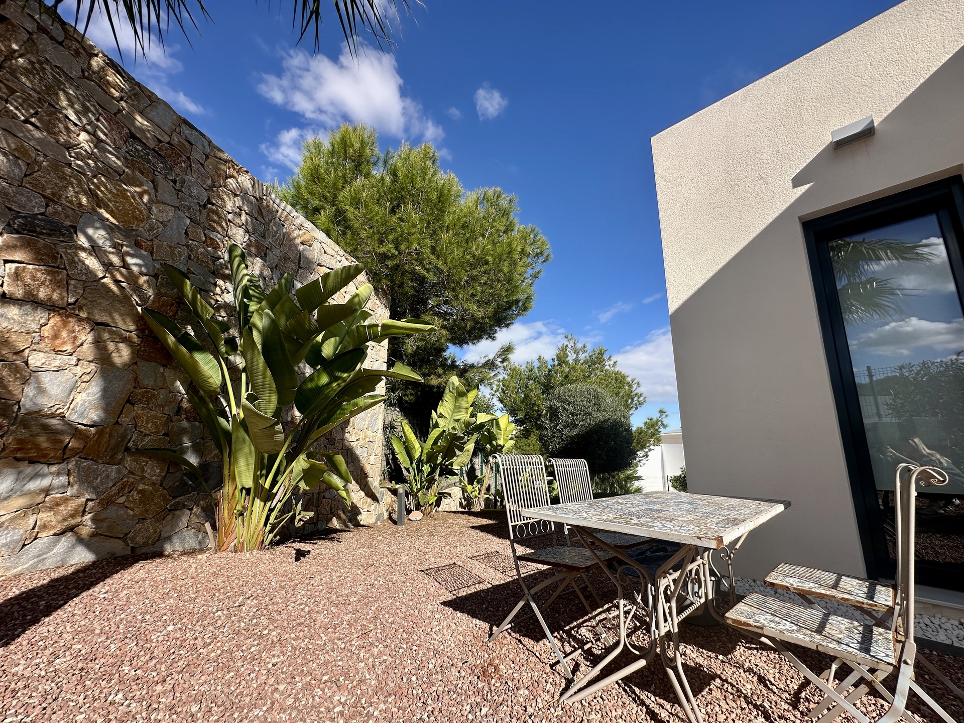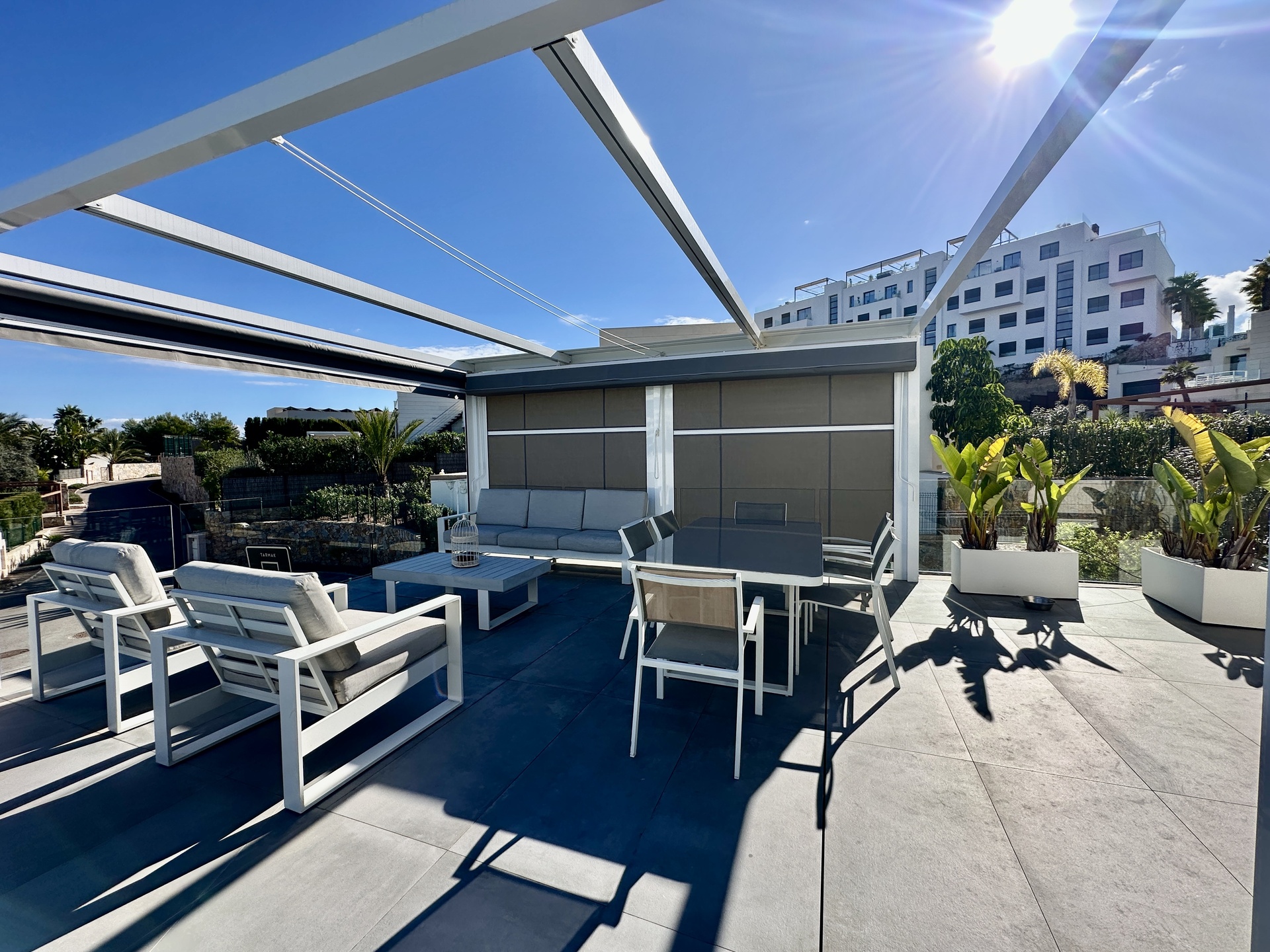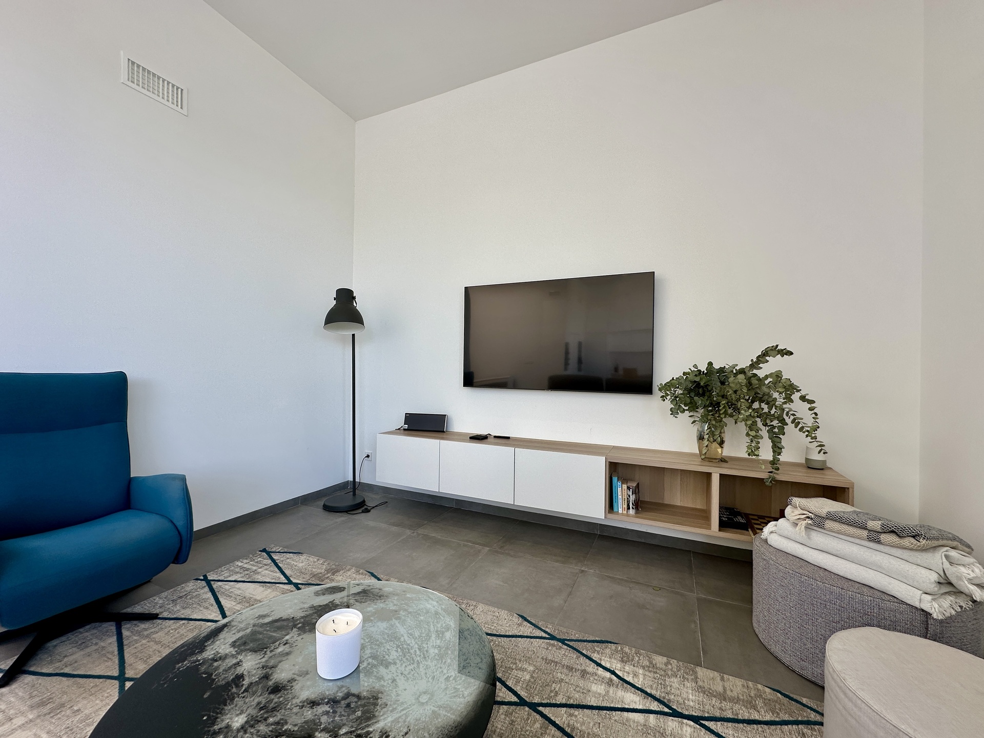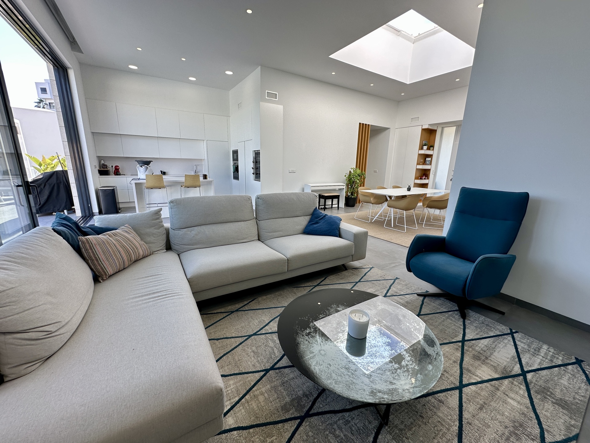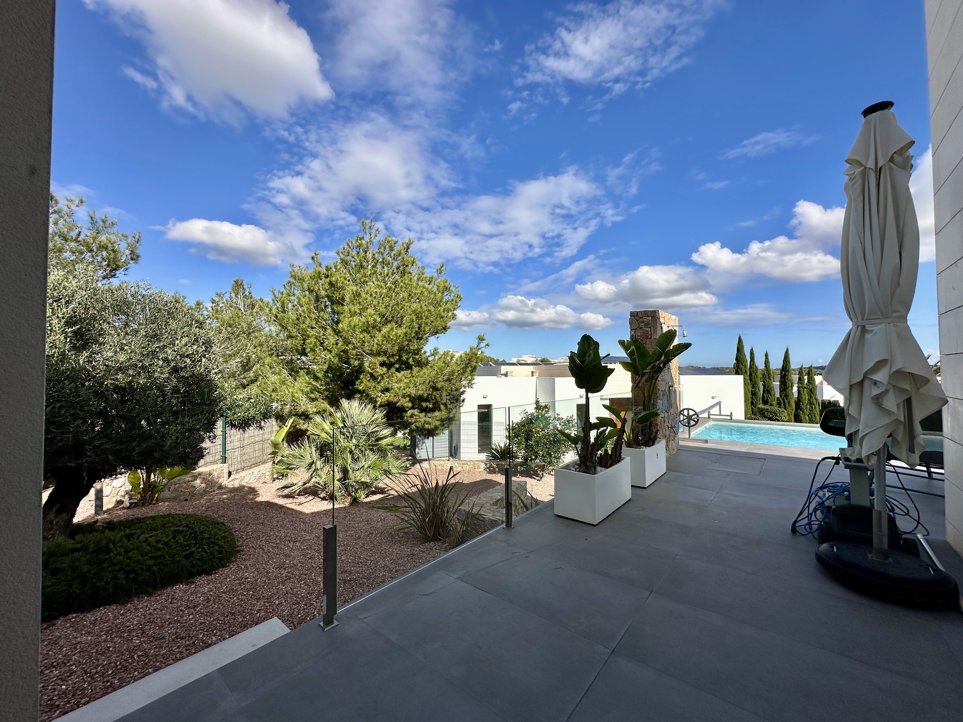 Step inside to be welcomed by soaring ceilings and an abundance of natural light. A striking picture window seamlessly blends the interior living space with an expansive 87 m² south-facing terrace, showcasing a 10-meter heated saltwater pool with tranquil views over the pine trees.