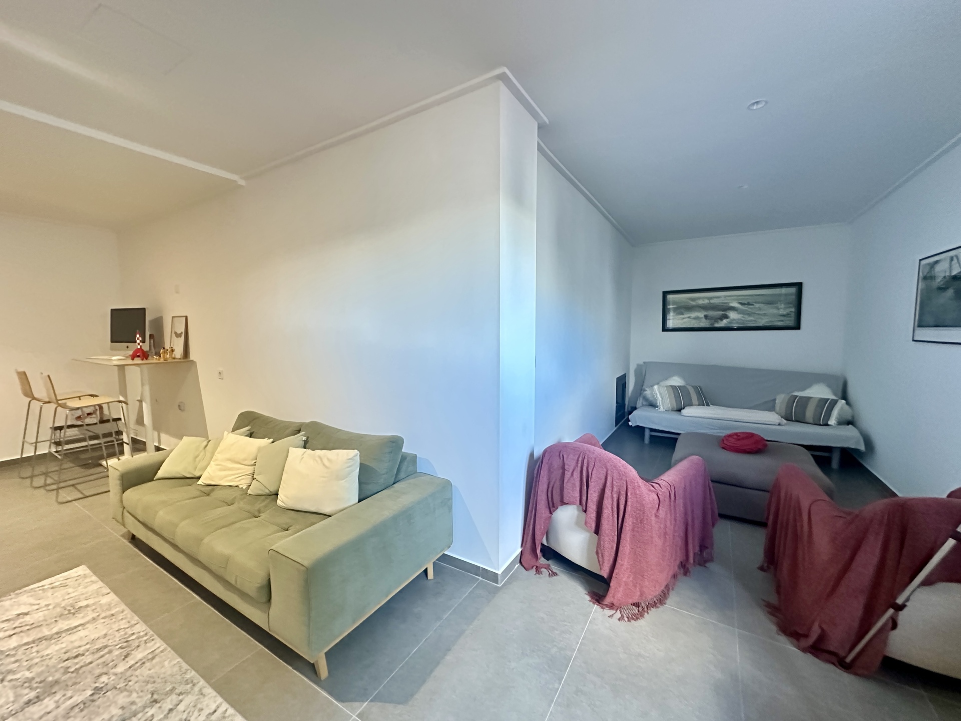 • A bright, generous living area with a fully equipped open-plan kitchen
